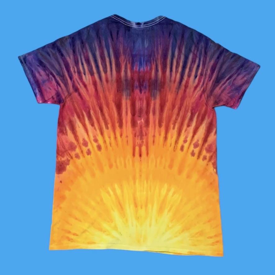 Groovy Panda’s Sunrise tee is pure tie-dyed bliss for your cosmic journey, a short-sleeve masterpiece in Size 2X. This happening sunburst radiates from a brilliant, soul-stirring yellow at the base, melting upwards through fiery oranges and passionate reds. Above, the sky shifts into deep, contemplative purples and cool indigos across the shoulders, a true far-out spectacle. Feel the energy, let your inner light beam out. Let the sun shine, man!